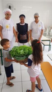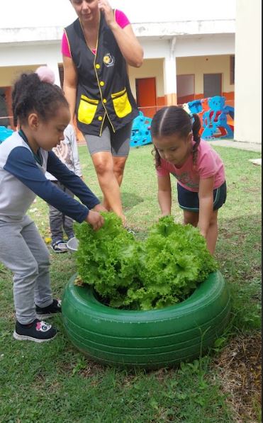 Crianças da unidade escolar de Pindamonhangaba CMEI Yolanda Immediato Fryling participam do cultivo da horta.