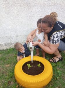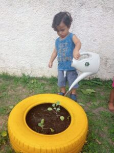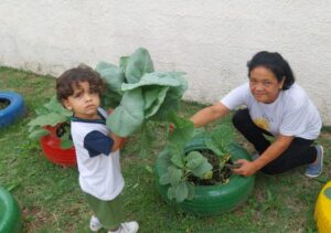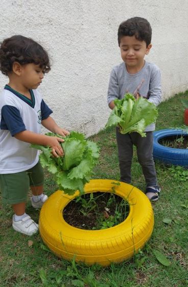 A iniciativa de cultivar um espaço para as plantações incentiva a criança a prestar atenção na natureza, suas diversas formas, cores, cheiros e sabores.